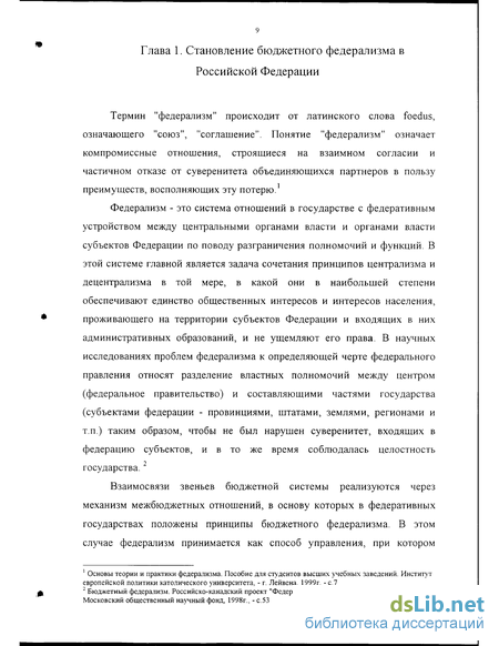 Глава 1. Становление бюджетного федерализма в Российской Федерации .9