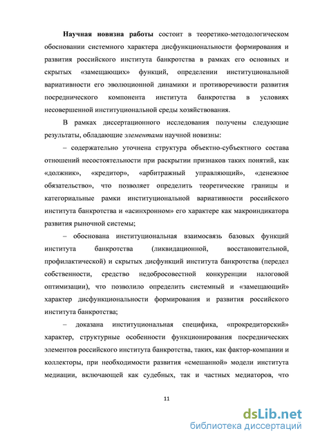 Институт банкротства является базовым элементом рыночной экономики, функционирование которого оказывает существенное влияние на макро- и микроэкономические параметры развития национальной экономики. Однако российский институт банкротства характеризуется не только высоким уровнем конфликтности функционирования, но и усложнением процессов согласования и реализации экономических интересов участников отношений несостоятельности, что отражается в противоречивости, как отдельных процедур банкротства, так и в развитии всего института.