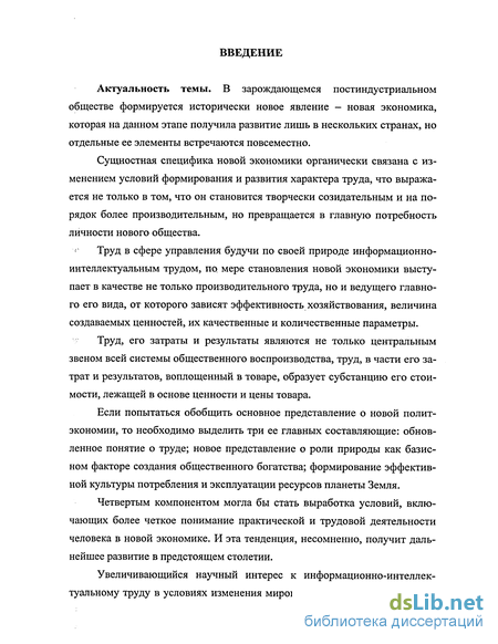Актуальность темы состоит в ее теоретическом раскрытии и практическом применении, так как результаты исследований и разработок в этой области служат методологическим фундаментом для построения оценок и материального стимулирования организационно-управленческого труда. Поэтому рассмотрение условий формирования и развития организационно-управленческого труда в новой экономике и их особенностей обусловило выбор темы диссертационного исследования.