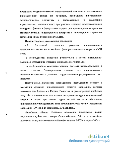 -обосновано и доказано несовершенство налоговой системы, которая слабо ориентирована на создание стимулов для предпринимательства, действующих в научно-технических и инновационных сферах;