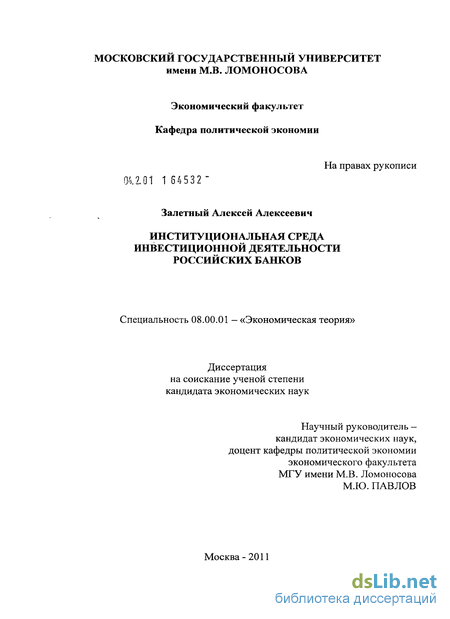2.2. Российская специфика институционализации собственности в банковском инвестиционном процессе 116