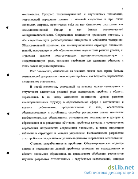 5 компьютеров. Прогресс телекоммуникаций и спутниковых технологий, позволяющий передавать данные с высокой скоростью и при очень маленьких затратах, практически свёл на нет физическое расстояние как коммуникационный барьер и как фактор экономической конкурентоспособности. Современные технологии проникают повсюду, о чём свидетельствует распространение интернета и мобильной телефонии. Образовательный комплекс, как институциональная структура экономики знаний, включающая в себя образовательные подсистемы разного уровня, и, играющая важную педагогическую, научно-исследовательскую и информационную роль, жизненно необходим для адаптации общества к столь далеко идущим переменам.