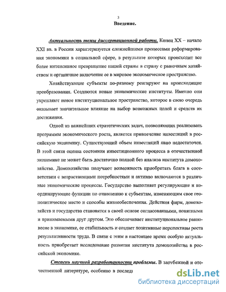 Цель и задачи исследования. Целью диссертационной работы является изучение развития института домохозяйства в условиях трансформирующейся экономики.
