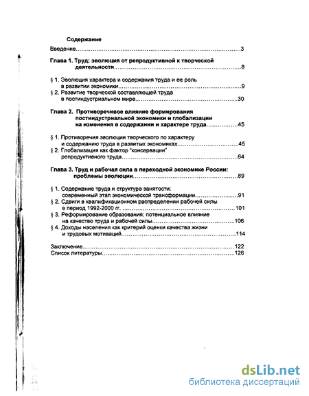 Однако в целом исследование эволюции от репродуктивного труда к творческому и изменений в экономических формах организации труда в условиях генезиса постиндустриального общества является недостаточно исследованной проблемой, особенно если речь идет о систематизации экономических противоречий этой трансформации. Практически не изучены также возможности развития творческого содержания труда в переходной экономике России.