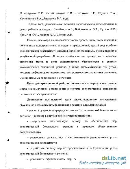Цель диссертационной работы заключается в определении роли и места экономической безопасности в системе экономических отношений региона и их воспроизводстве.