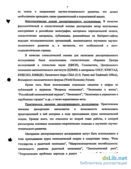 Практическое значение диссертационного исследования. Практическое значение диссертации заключается в возможности использовать представленный в ней материал в ходе преподавания курса экономической теории. Прежде всего, это относится ко второй главе работы, в которой рассмотрены основные экономико-теоретические подходы к изучению научно-технического развития.