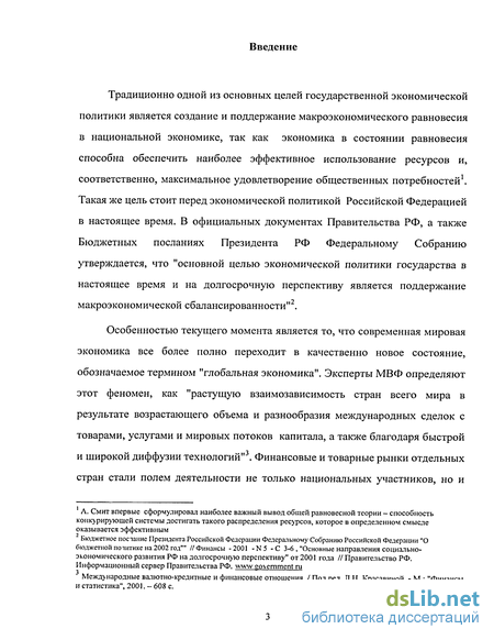 Традиционно одной из основных целей государственной экономической политики является создание и поддержание макроэкономического равновесия в национальной экономике, так как экономика в состоянии равновесия способна обеспечить наиболее эффективное использование ресурсов и, соответственно, максимальное удовлетворение общественных потребностей1. Такая же цель стоит перед экономической политикой Российской Федерацией в настоящее время. В официальных документах Правительства РФ, а также Бюджетных посланиях Президента РФ Федеральному Собранию утверждается, что "основной целью экономической политики государства в настоящее время и на долгосрочную перспективу является поддержание макроэкономической сбалансированности" .