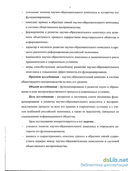 Предмет исследования - научно-образовательный комплекс в системе общественного воспроизводства на всех его уровнях.