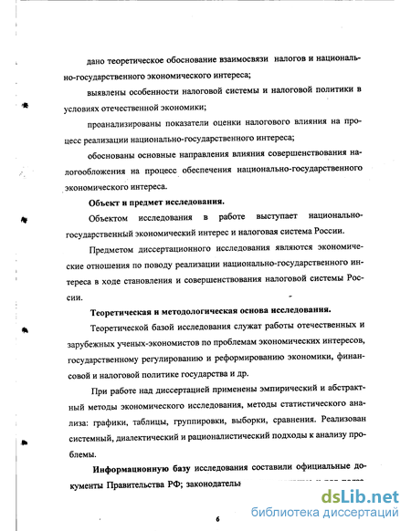 Таким образом, в экономической литературе существует многообразие точек зрения на национально-государственные интересы и проблемы налогообложения. Однако в экономической литературе нет специальных работ, посвященных анализу влияния реформирования налоговой системы России на обеспечение национально-государственного экономического интереса. Анализу этой сложной проблемы и посвящено диссертационное исследование.