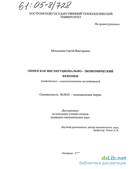 В диссертационной работе последовательно используется системно-целостный подход, позволивший показать изначальную сложность обмена и его универсальный характер. Многие теоретические положения иллюстрируются статистическими данными, конкретными примерами, схемами и графиками.