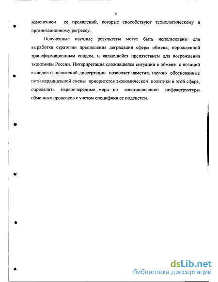 Полученные научные результаты могут быть использованы для выработки стратегии преодоления деградации сферы обмена, порожденной трансформационным спадом, и являющейся препятствием для возрождения экономики России. Интерпретация сложившейся ситуации в обмене с позиций выводов и положений диссертации позволяет наметить научно обоснованные пути кардинальной смены приоритетов экономической политики в этой сфере, определить первоочередные меры по восстановлению инфраструктуры обменных процессов с учетом специфики ее подсистем.