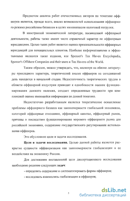 Предметом анализа работ отечественных авторов по тематике оффшоров является, прежде всего, анализ возможностей использования оффшорного режима российским бизнесом в целях минимизации налоговой нагрузки.