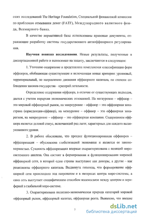 Информационную базу исследования составили данные отечественной и зарубежной статистики, материалы периодической отечественной и зарубежной печати. Большой объем данных почерпнут из материалов таких международных организаций, как: ОЭСР, Американского центра экономиче ских исследований The Heritage Foundation, Специальной финансовой комиссии по проблемам отмывания денег (FATF), Международного валютного фонда, Всемирного банка.