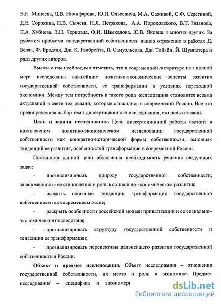 Цель и задачи исследования. Цель диссертационной работы состоит в комплексном политико-экономическом исследовании государственной собственности как конкретно-исторической формы собственности, основных тенденций ее развития, особенностей трансформации в современной России.