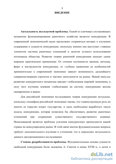 Исследование теории конкуренции актуально для российской экономики, поскольку ее специфика такова, что главенствующую роль во многих отраслях играет государство. Поэтому необходимо выработать такую модель конкуренции, которая позволяет обеспечивать развитие рыночных отношений при сохранении существенного государственного влияния на экономику. Немаловажной является проблема усиления конкурентных преимуществ нашей страны на международном рынке. В этой связи многие фундаментальные проблемы требуют дополнительного изучения и уточнения, что и определяет актуальность диссертационного исследования.