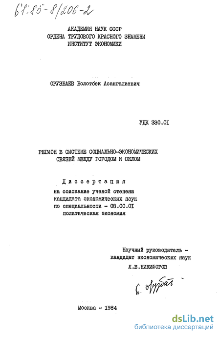 - Специфика решения проблем преодоления социально-экономических различий между городом и селом в Киргизской ССР в условиях развитого социализма