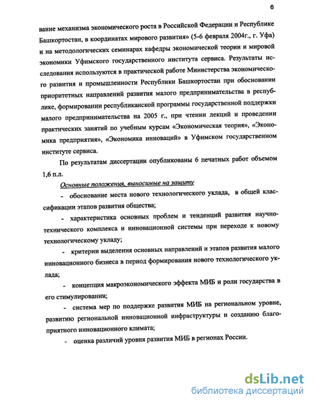 Цель диссертационного исследования - обоснование роли малого инновационного бизнеса в формировании нового технологического уклада и путей его развития в условиях современной России.