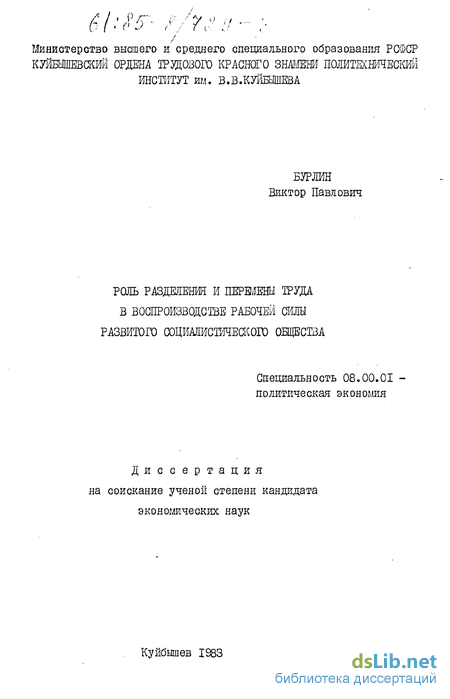 Воспроизводство человека как потенциального субъекта труда, его способностей к разносторонней общественно полезной деятельности - это труд, а в условиях развитого социалистического общества - это труд несомненно высшей квалификации. Содержание этого труда характеризуется в первую очередь его разделением и переменой. Отсюда - необходимость исследования сущности и взаимосвязи этих категорий не только в общественных, но и в их естественных формах.
