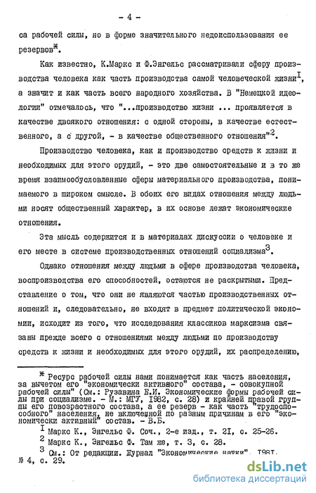Как известно, К.Маркс и Ф.Энгельс рассматривали сферу производства человека как часть производства самой человеческой жизни1, а значит и как часть всего народного хозяйства. В "Немецкой идеологии" отмечалось, что "...производство жизни ... проявляется в качестве двоякого отношения: с одной стороны, в качестве естественного, а с другой, - в качестве общественного отношения" -.