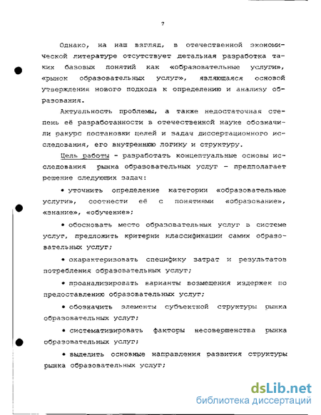 Цель работы - разработать концептуальные основы исследования рынка образовательных услуг - предполагает решение следующих задач: