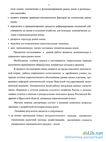 Научная новизна диссертации состоит в решении комплекса вопросов, связанных с разработкой категории рынка земли.