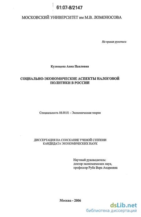 Сложившаяся в России специфика инфляционных и социальных процессов и отсутствие целостной налоговой концепции в условиях возрастания влияния немонетарных факторов на основные социально-экономические показатели определили актуальность темы диссертационного исследования.