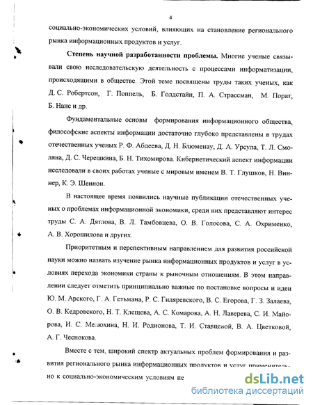 Вместе с тем, широкий спектр актуальных проблем формирования и развития регионального рынка информационных продуктов и услуг применительно к социально-экономическим условиям переходной экономики России в на стоящее время является мало изученным. На наш взгляд, ряд теоретических положений и практических вопросов столь важной для общества проблемы необходимо проанализировать и обобщить применительно к требованиям современного периода коренных преобразований жизни страны.