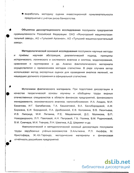 выработать методику оценки инвестиционной привлекательности предприятий с учётом риска банкротства.