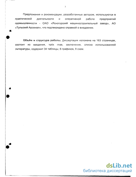 Предложения и рекомендации, разработанные автором, используются в практической деятельности и оперативной работе предприятий промышленности - ОАО «Ясногорский машиностроительный завод», АО «Тульский Арсенал», что подтверждено справкой о внедрении.