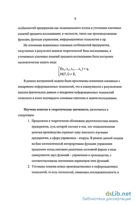 особенностей предприятия как экономического агента и уточнения ключевых понятий предмета исследования, в частности, таких как производственная функция, функция управления, информационные технологии и пр.