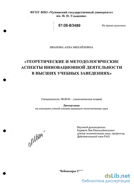 Глава 2. Методологические основы функционирования инновационной деятельности в высших учебных заведениях 63