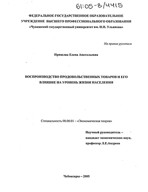 Цель и задачи исследования. Цель данного диссертационного исследования - выявление современных тенденций воспроизводства продовольственных товаров на основе изучения его особенностей в Чувашской Республике и других республиках и областях Приволжского федерального округа, Российской Федерации в целом и его факторов, влияющих на уровень жизни населения.