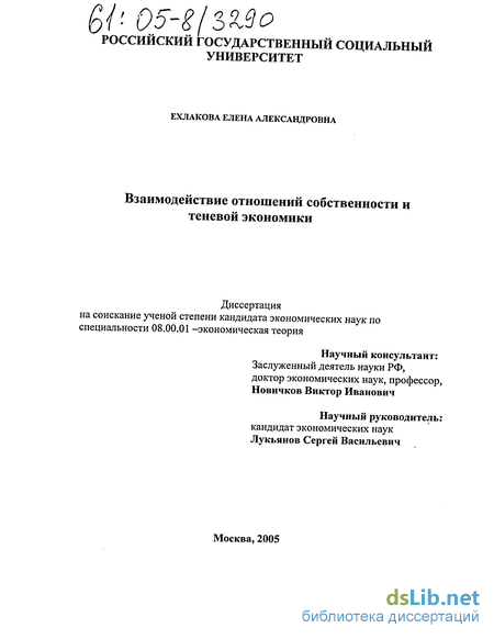 Предметом исследования является взаимодействие отношений собственности и характера экономической жизнедеятельности в аспектах их открытости и ухода в тень, а также меры противодействия государства теневым экономическим отношениям.