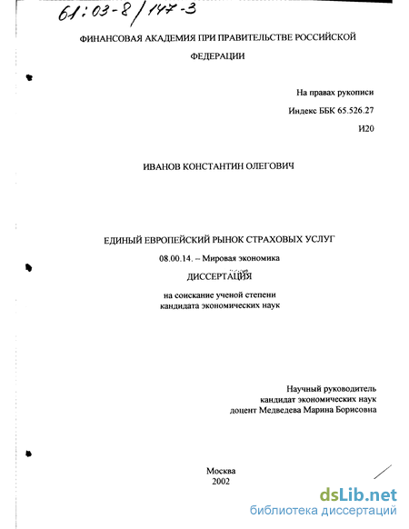 ГЛАВА III. Перспективы интеграции российского рынка страхования в ЕЕРСУ 92