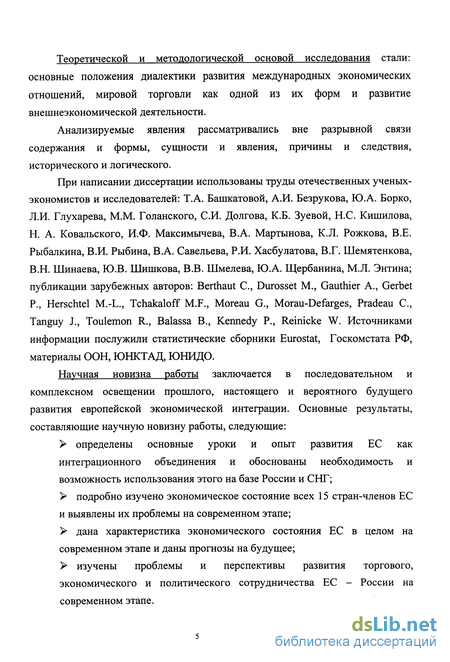 Научная новизна работы заключается в последовательном и комплексном освещении прошлого, настоящего и вероятного будущего развития европейской экономической интеграции. Основные результаты, составляющие научную новизну работы, следующие: