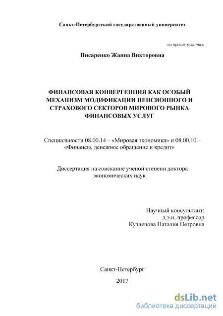 проблем и практических вопросов финансовой конвергенции страхового и пенсионного сегментов мирового финансового рынка.