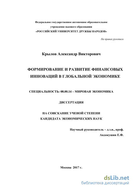 Актуальность темы исследования. Эффективное развитие современной экономики предполагает использование всего комплекса инновационного потенциала любой страны. Этот инновационный комплекс включает в себя как научно-технические, так и организационно-экономические инновации, в том числе финансовые инновации. При этом финансовый сегмент инноваций приобретает в последнее время возрастающую значимость, как для растущего и модифицирующегося финансового сектора, обеспечения финансовой безопасности страны, так и воздействия на состояние и темпы развития мировой экономики, вплоть до формирования предпосылок глобальных потрясений в форме финансово-экономических кризисов. Последнее обстоятельство делает актуальным изучение особенностей реализации финансовых инноваций, как потенциального фактора, способствующего возникновению таких ситуаций.