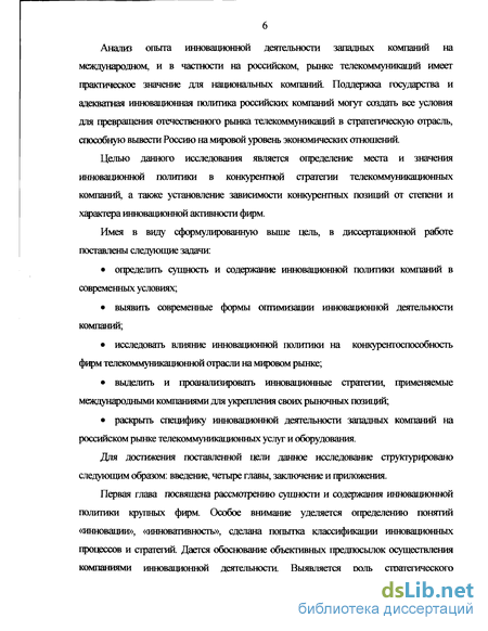 исследовать влияние инновационной политики на конкурентоспособность фирм телекоммуникационной отрасли на мировом рынке;