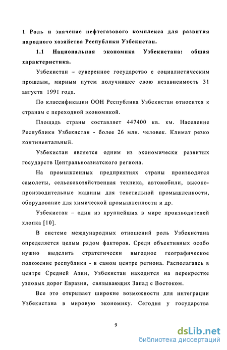 1. Роль и значение нефтегазового комплекса для развития народного хозяйства Республики Узбекистан 9