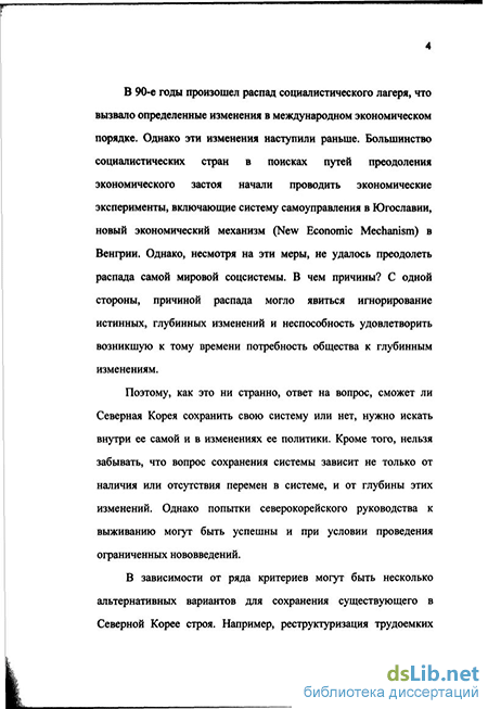 На рубеже 1990-х годов после распада Советского Союза и социалистического блока в Восточной Европе, резко повысился интерес к экономическим реформам и открытию железного занавеса в Северной Корее. Однако, по причине отсутствия на сегодняшний день устоявшейся четкой терминологии, понятий и определений, способных стать универсальными критериями оценки реформы и политики открытия Северной Кореи внешнему миру, оценки развития Северной Кореи значительно различаются у каждого аналитика. Одни утверждают: поскольку в сравнении с масштабом изменений в сторону реформ и открытости в других социалистических странах, уровень подобных перемен в Северной Корее вовсе незначителен, поэтому вообще принципиально рано говорить о том, что КНДР уже начала проведение каких-либо экономических или политических реформ. В то же время другие заявляют, что в отличие от прошлого, когда Северная Корея была строго закрытым государством, сегодня она осознает необходимость и важность международной торговли и международного сотрудничества и пусть пока в очень ограниченных рамках, но все же стремится к поиску путей расширения торговых контактов. Это является ярким доказательством того, что КНДР уже ступила на путь открытости и экономических реформ. Более того, исходя из ожидания хоть каких-нибудь перемен в политике "строительства самостоятельного народного хозяйства"1, которой КНДР последовательно придерживалась на протяжении всего периода после раздела Корейского полуострова, они описывают экономические реформы, используя дедуктивный метод. Требуется установление общих понятий и терминологии по вопросу экономических реформ и политики открытия железного занавеса в Северной Корее.