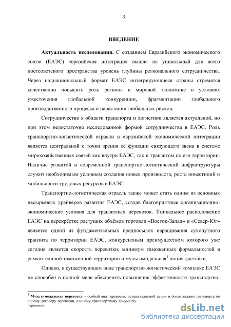 ГЛАВА 1. Экономические основы транспортно логистического сотрудничества в ЕАЭС 11