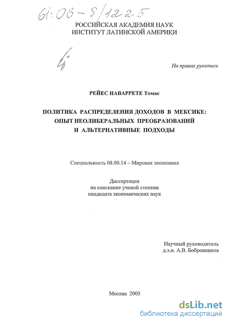 Автор обращался к работам, посвященным анализу особенностей развития мексиканской экономики П. Аспе Армельи, М. Гарсиа Суарес, Р. Гигале, Х.А. Кальдеро-на, Э Лориа Диаса, А.Уэрты Гонсалеса и других. Особый интерес представляли теоретические положения, непосредственно касающиеся проблемы распределения доходов в Мексике и Латинской Америке, представленные в работах О. Альтимира, С. Гарду-ньо Риоса, О. Гонсалеса Белы, Р. Мартинеса Эскамильи, И. Мартинес де Ыаварете, Х.Ф. Нойолы Васкеса, Э. Эрнандеса Лаоса, А. Фокслея. Автор диссертации ознакомился с трз дами ряда российских исследователей по экономике Мексике и различным аспектам неолиберальных преобразований в Латинской Америке, опубликованными на испанском и русском языках 9.