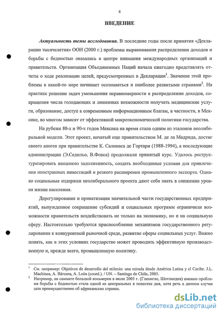 Актуальность темы исследования. В последние годы после принятия «Декларации тысячелетия» ООН (2000 г.) проблемы выравнивания распределения доходов и борьбы с бедностью оказались в центре внимания международных организаций и правительств. Организация Объединенных Наций начала ежегодно представлять отчеты о ходе реализации целей, предусмотренных в Декларации1. Значение этой про-блемы в какой-то мере начинает осознаваться и наиболее развитыми странами . На практике решение задач уменьшения неравномерности в распределении доходов, сокращения числа голодающих и лишенных возможности получать медицинские услуги, образование, доступ к современным информационным благам, в частности, в Мексике, во многом зависят от эффективной макроэкономической политики государства.