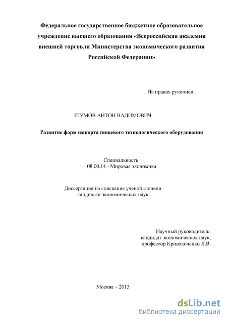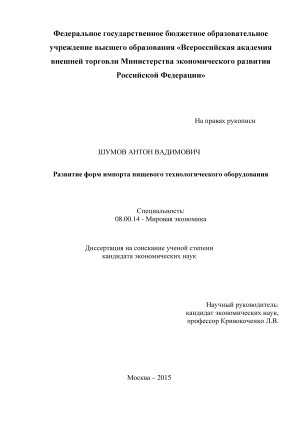 Глава 1. Формы и методы импорта оборудования в системе международной торговли 15