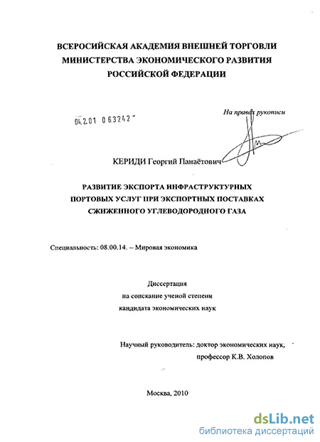 Научная новизна диссертационного исследования заключается в разработке и обосновании путей развития экспорта инфраструктурных портовых услуг, сопутствующих экспортным поставкам сжиженного углеводородного газа.