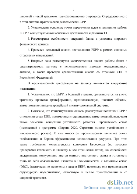 Установлено, что ЕБРР, в большей степени, ориентируется на узкую трактовку процесса трансформации, предполагающую, главным образом, заимствование западноевропейской институциональной системы.