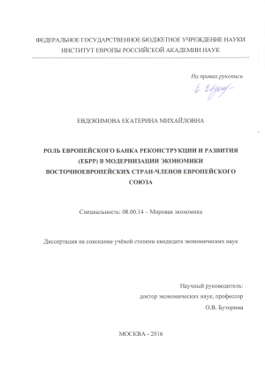 Хронологические рамки исследования определяются его целью и задачами и в целом совпадают с периодом деятельности ЕБРР с начала 1990-х гг. до 2015 г.