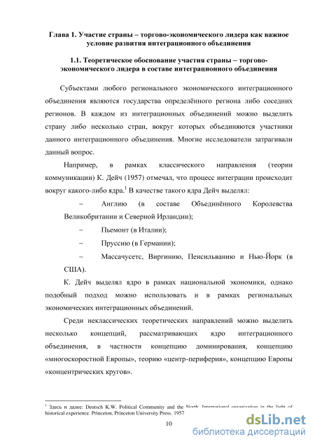 Глава 1. Участие страны – торгово-экономического лидера как важное условие развития интеграционного объединения 10