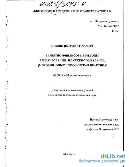 Степень научной разработанности темы. В отечественной науке концепция платежного баланса, методика его анализа рассматривались в работах СМ. Борисова, М.А. Портного, В.К. Поспелова, Л.И. Фрея, А.В. Цимайло. Критикуя методологию составления платежного баланса МВФ за ее ограниченность, Л.И. Фрей исследовал проблему полного и всестороннего анализа платежных отношений. В работах О.С. Богданова, В.В. Мотылева, Д.В. Смыслова анализировались широкий спектр буржуазных неоклассических теорий платежных отношений и проблема регулирования платежного баланса с позиций марксисткой политэкономии. В работах ГЛ. Шагалова определялись подходы к установлению равновесного валютного курса, исходя из теории паритета покупательной способности (ППС).