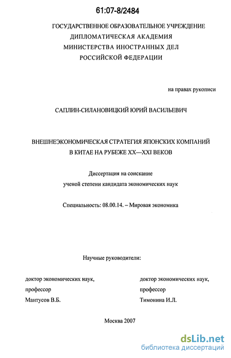 9 Степень разработанности темы. До настоящего времени выбранная тема не получила достаточного освещения в России, и имеющиеся немногочисленные работы касаются современного состояния японо-китайских отношений в целом, а экономическим вопросам, в особенности стратегии компаний, в них отведена лишь небольшая часть. При этом необходимо отметить, что отечественными специалистами намного более существенно разработаны различные аспекты российско-китайских и российско-японских связей. В то же время недостаточная разработанность современной проблематики экономических отношений между Японией и Китаем, в особенности в контексте взаимосвязи вопросов макро- и микроэкономического уровня, не позволяет создать адекватную научно-методологическую базу для решения задачи определения эффективных направлений развития экономических отношений России с этими двумя странами. Изучение, анализ и обобщение зарубежных источников, многочисленных публикаций, принадлежащих по преимуществу японским и китайским исследователям, статистических и аналитических материалов дали возможность автору проследить динамику современных японо-китайских экономических отношений, выявить основные тенденции, эволюцию и перспективы их развития, провести комплексный анализ стратегии японских компаний в КНР- важнейших субъектов экономических связей двух стран.